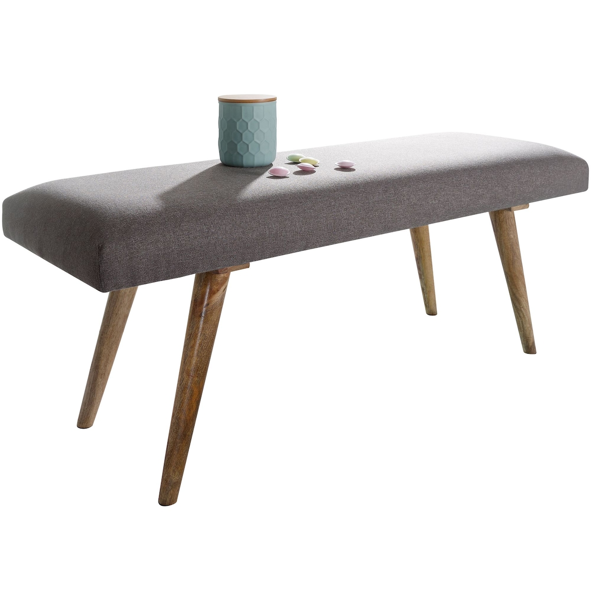 WOHNLING Sitzbank Stoff / Massivholz Bank Grau 117x51x38 cm im Retro Stil 2er Polsterbank Flur Gepolsterte Stoffbank Esszimmer Braun Kleine Bettbank