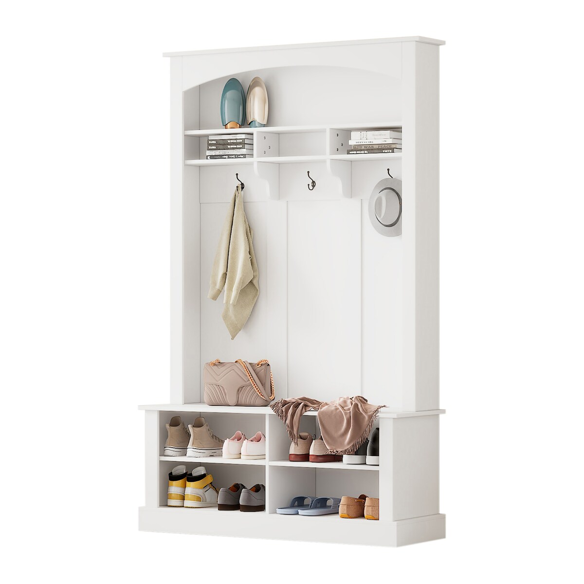 Garderoben-Set mit Bank und Schuhablage, rechteckige Aufbewahrung & Regale Garderobe für Flur, Weiß