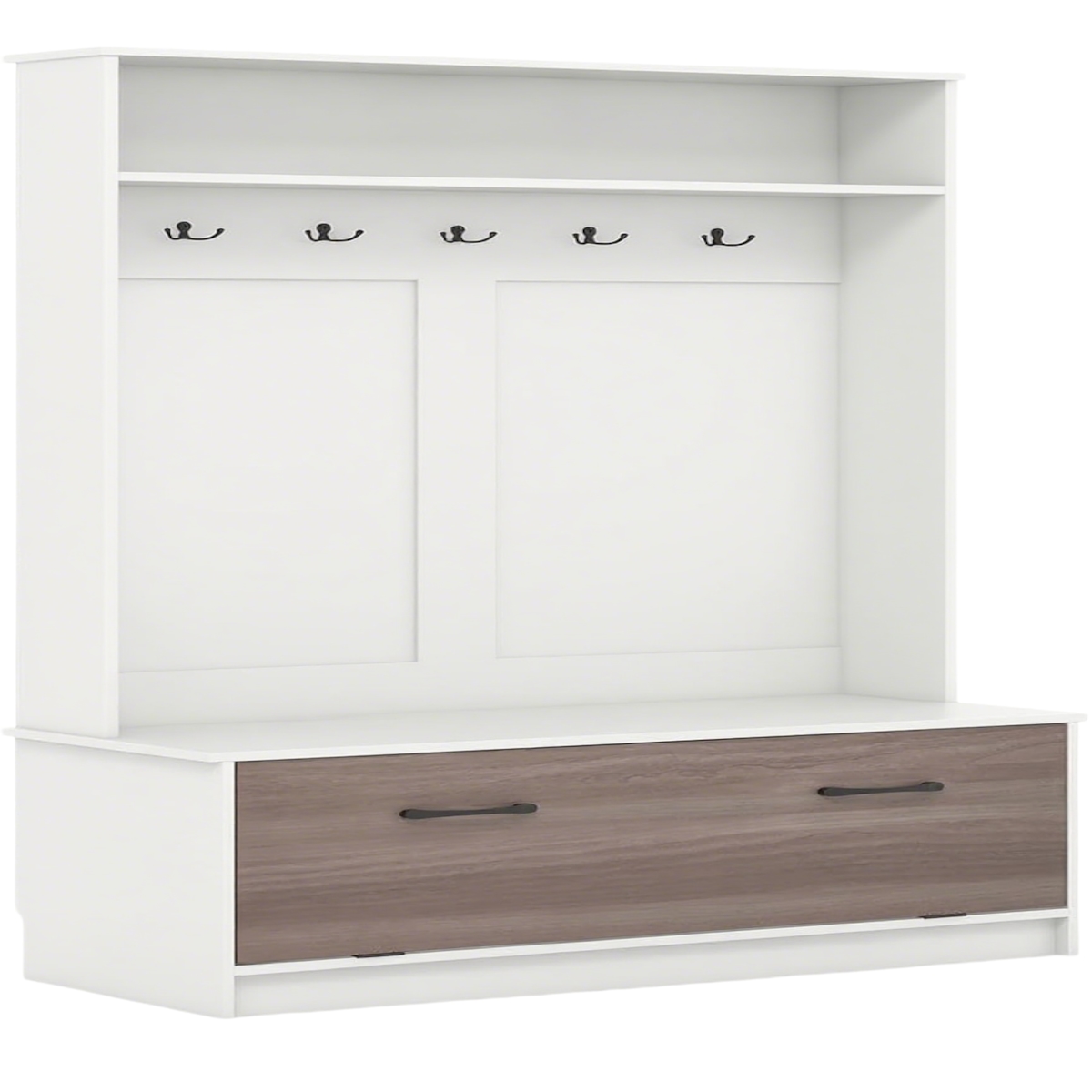 Garderoben-Set mit Bank 190x120x40 cm Weiß, Schuhablage, 4 Haken, 2 verstellbare Regale, multifunktional, Flur, Eingangsbereich