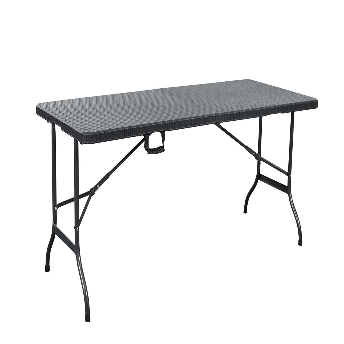 METRO PROFESSIONAL Banketttisch klappbar Vanimo, Stahl, HDPE-Tischplatte, Rattan Optik, 180 x 75 cm, schwarz