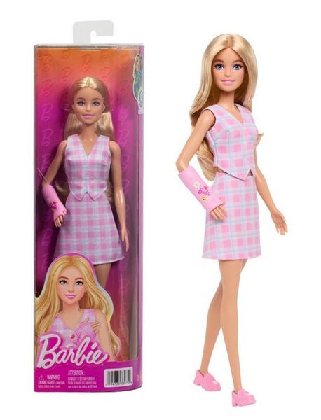 Barbie Fashionistas Puppe mit rosa Gips, Kariertes Top und Passender Rock, JJN56