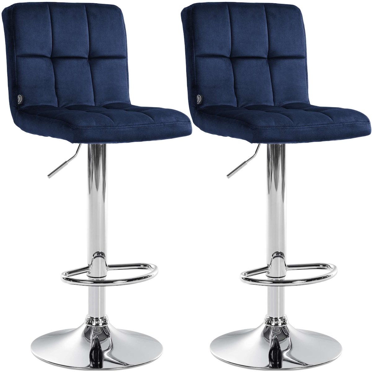 Proregal CHEFGASTRO 2er Set Barhocker ALASKA Samt Chrom HxBxT 94x46x47cm Samt Blau Barstuhl