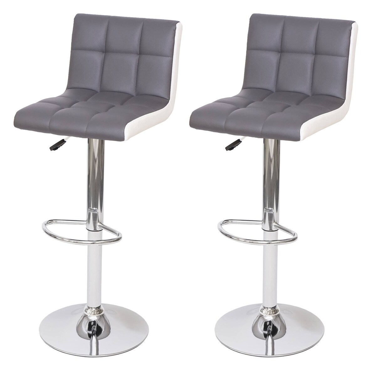 Proregal 2er-Set Barhocker gepolstert mit Lehne | Sitzhöhe 63-87cm | höhenverstellbar | Kunstleder Grau-Weiß | Chromfuß| Tresenhocker Barstuhl