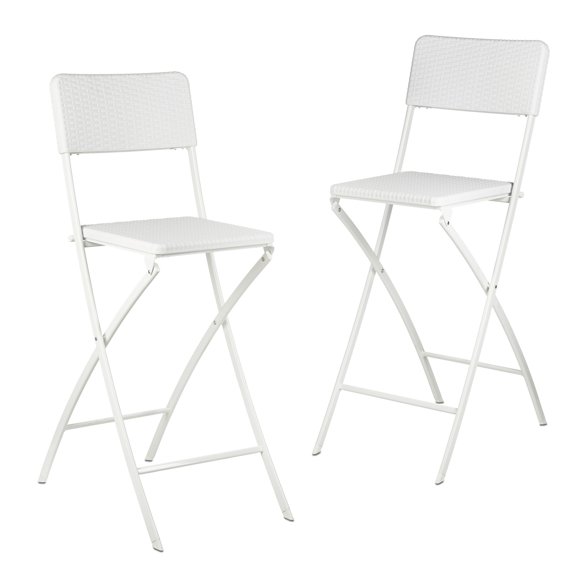 Relaxdays Barhocker klappbar, 2er Set, Rattan-Optik, Rückenlehne, HBT: 115 x 44 x 63 cm, Barstuhl, PE & Metall, weiß