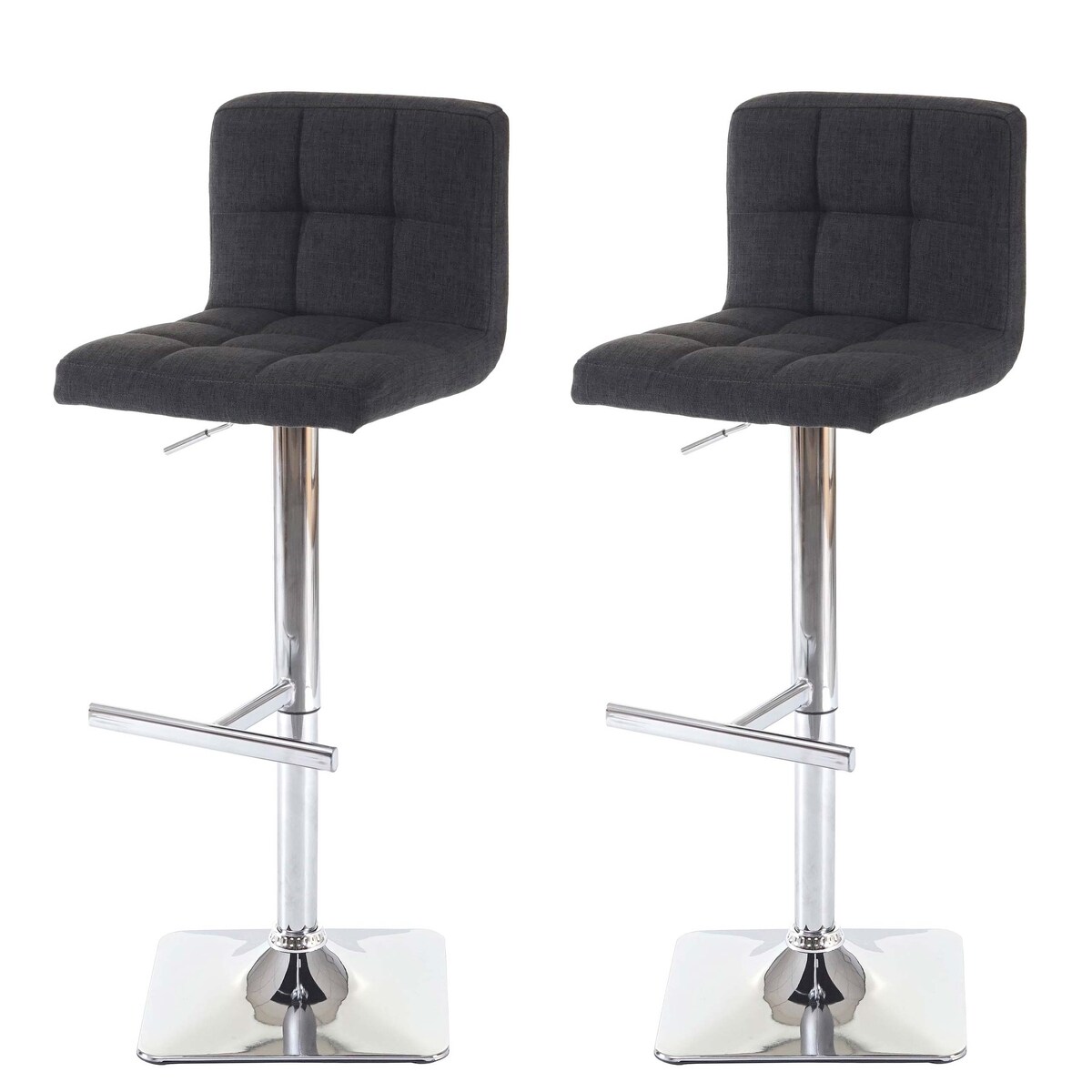 PROREGAL 2er-Set Barhocker gepolstert und höhenverstellbar mit Lehne, Sitzhöhe 63-84cm, mit Lehne drehbar, Stoff/Textil Dunkelgrau, Chromfuß, Barstuhl