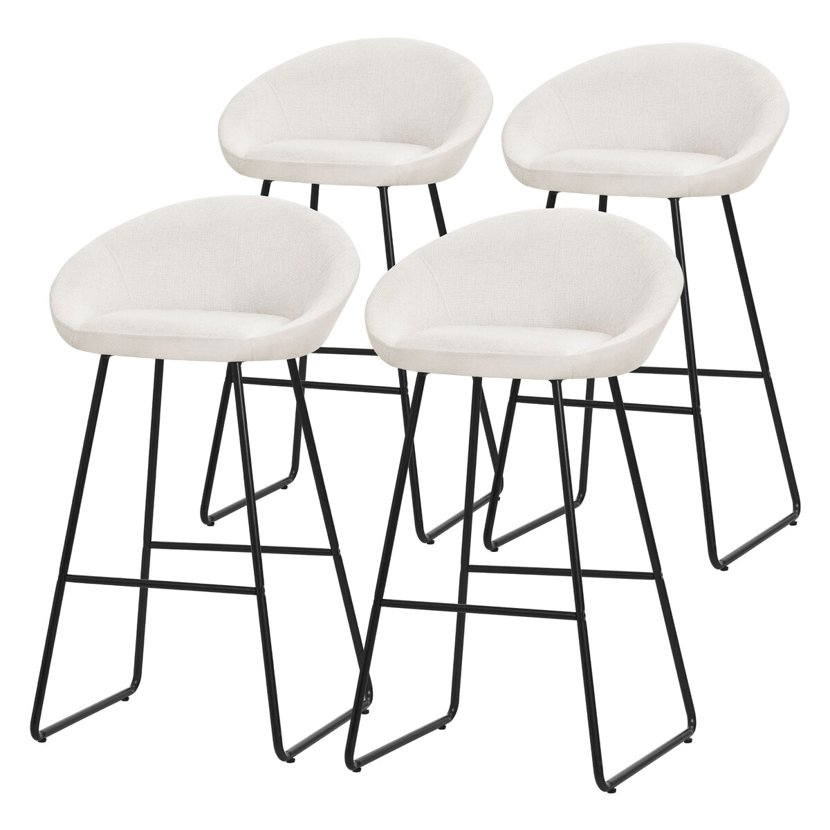 ML-Design Barhocker 4er Set Beige 76 cm, Stoffbezug, gepolstert, Metallgestell, Küchenhocker mit Rückenlehne & Fußstütze, Tresen- & Bistrohocker