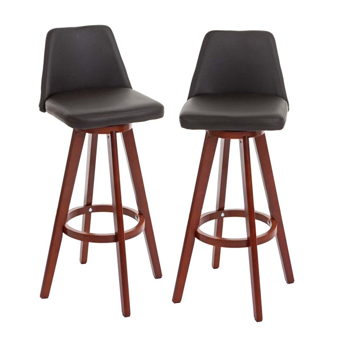 Mendler 2er-Set Barhocker HWC-C43, Barstuhl Tresenhocker, Holz Kunstleder drehbar MVG-zertifiziert ~ braun