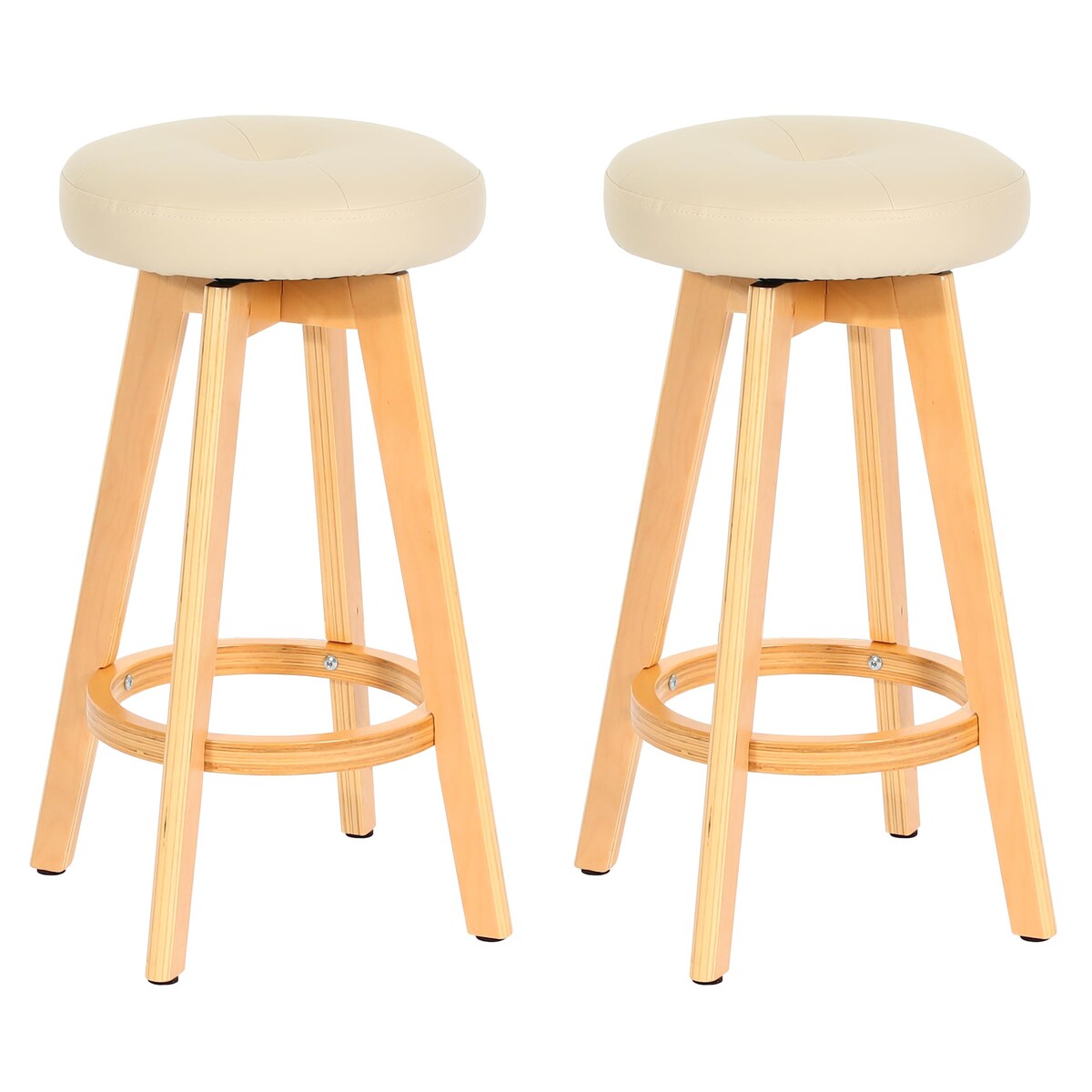 Proregal 2er-Set Barhocker drehbar und einfach | Sitzhöhe 67cm | Holz Kunstleder drehbar | Creme | helle Beine | Barstuhl Tresenhocker