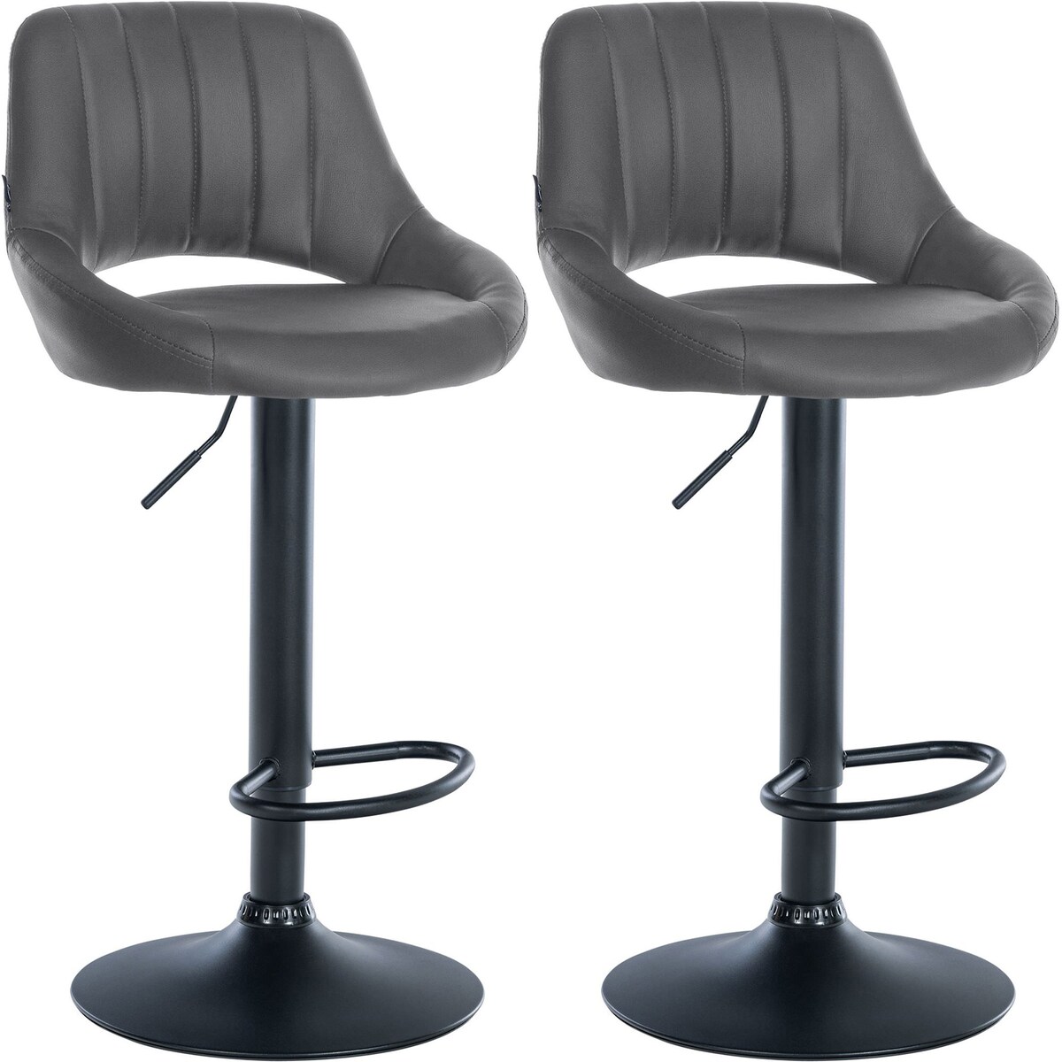 Barhocker 2er Set 42L x 38B x 82-104H cm Ohne Tisch Hoehenverstellbar Schwarz Kunstleder Lehne Gepolstert Mit Fussstuetze 360 Grad Lehnstuhl Drehstuhl
