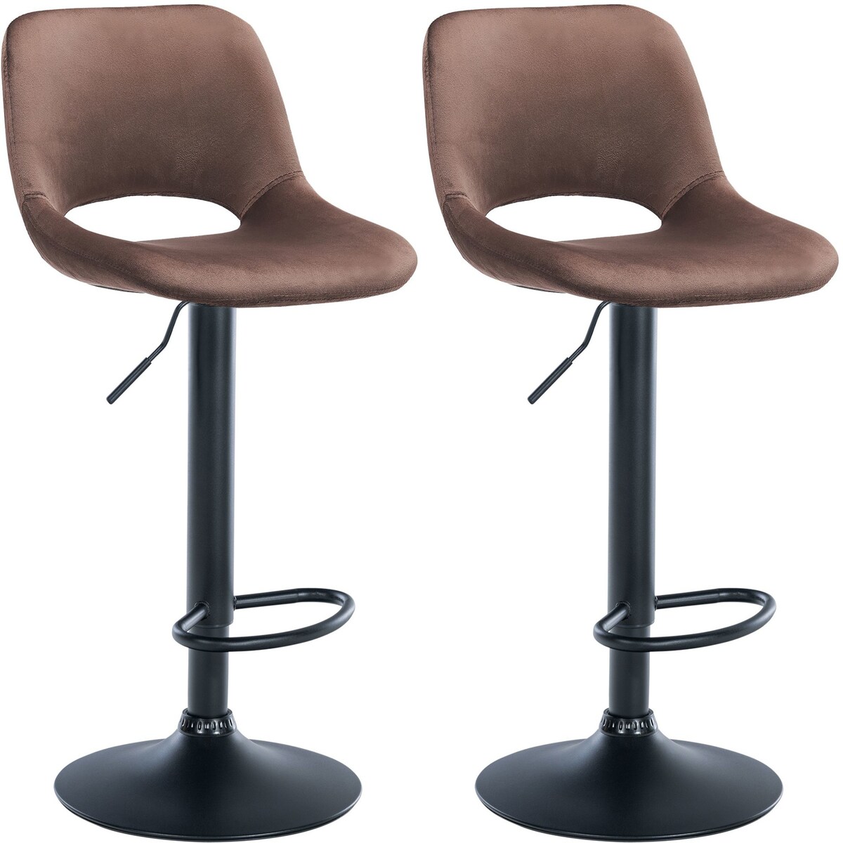CLP 2er Set Barhocker Damaso Samtbezug drehbar und stufenlos höhenverstellbar Farbe:braun;Material Gestell:Metall matt schwarz