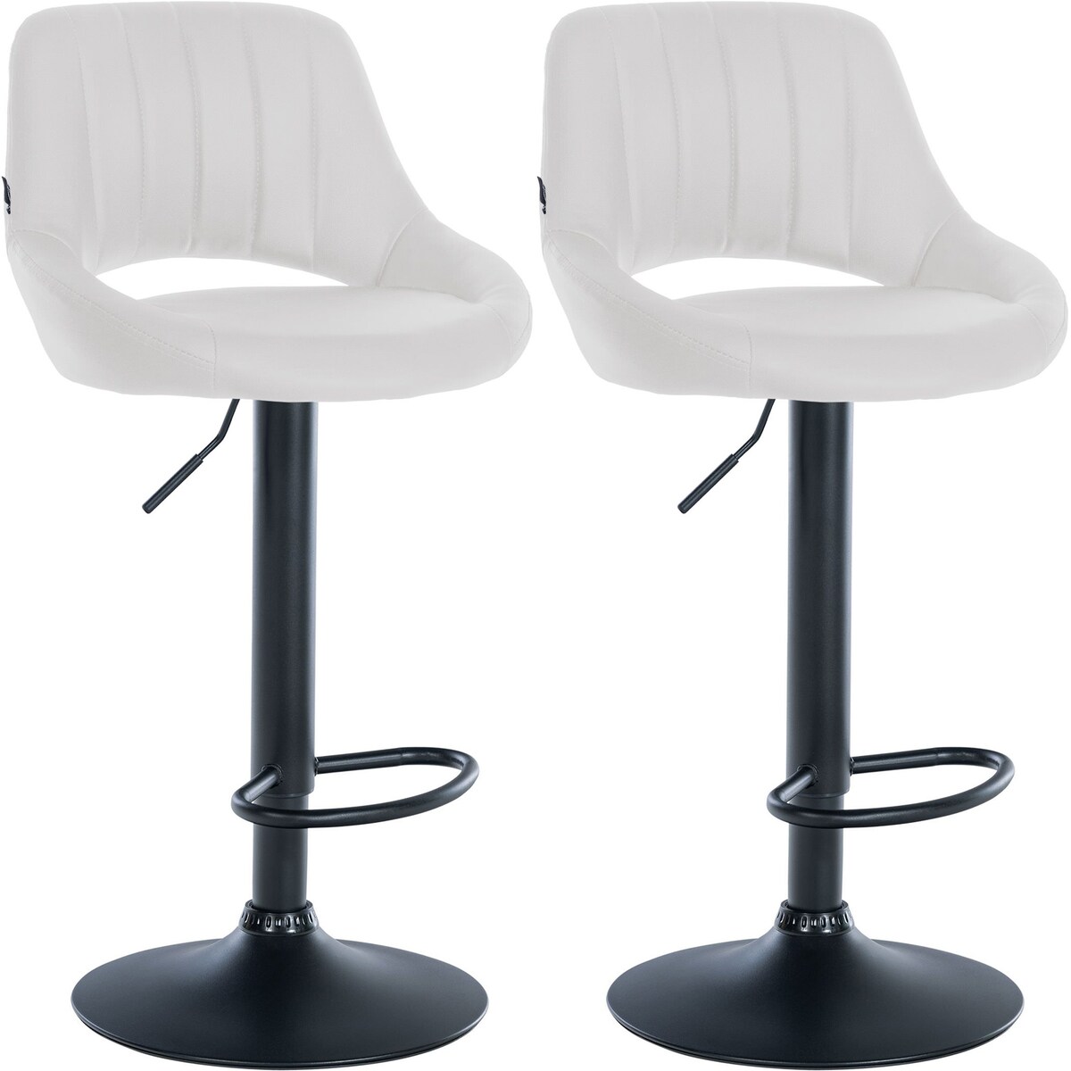 Mendler 2er-Set Barhocker HWC-G87, Tresenhocker Barstuhl, höhenverstellbar ~ Kunstleder schwarz-weiß, Chromfuß