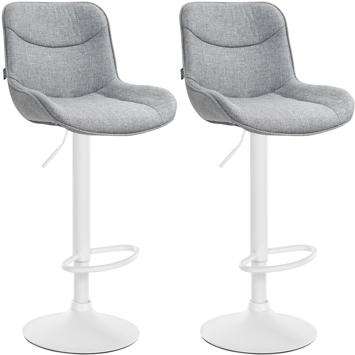 DELUKE 2er Set Barhocker RAGAD - Stoff Grau 49x51x85 cm Weiß | Barstuhl Höhenverstellbar Mit Lehne Drehbar Tresenhocker Tresenstuhl Kneipenhocker