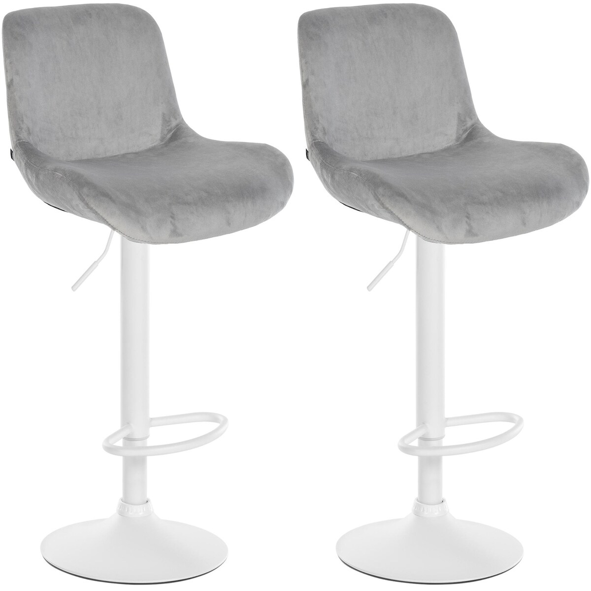 DELUKE Barhocker 2er Set DUBLIN - Grau, Samt, Weiß | Barhocker mit Lehne Barstuhl Tresenhocker Tresenstuhl Kneipenhocker Kneipenstuhl