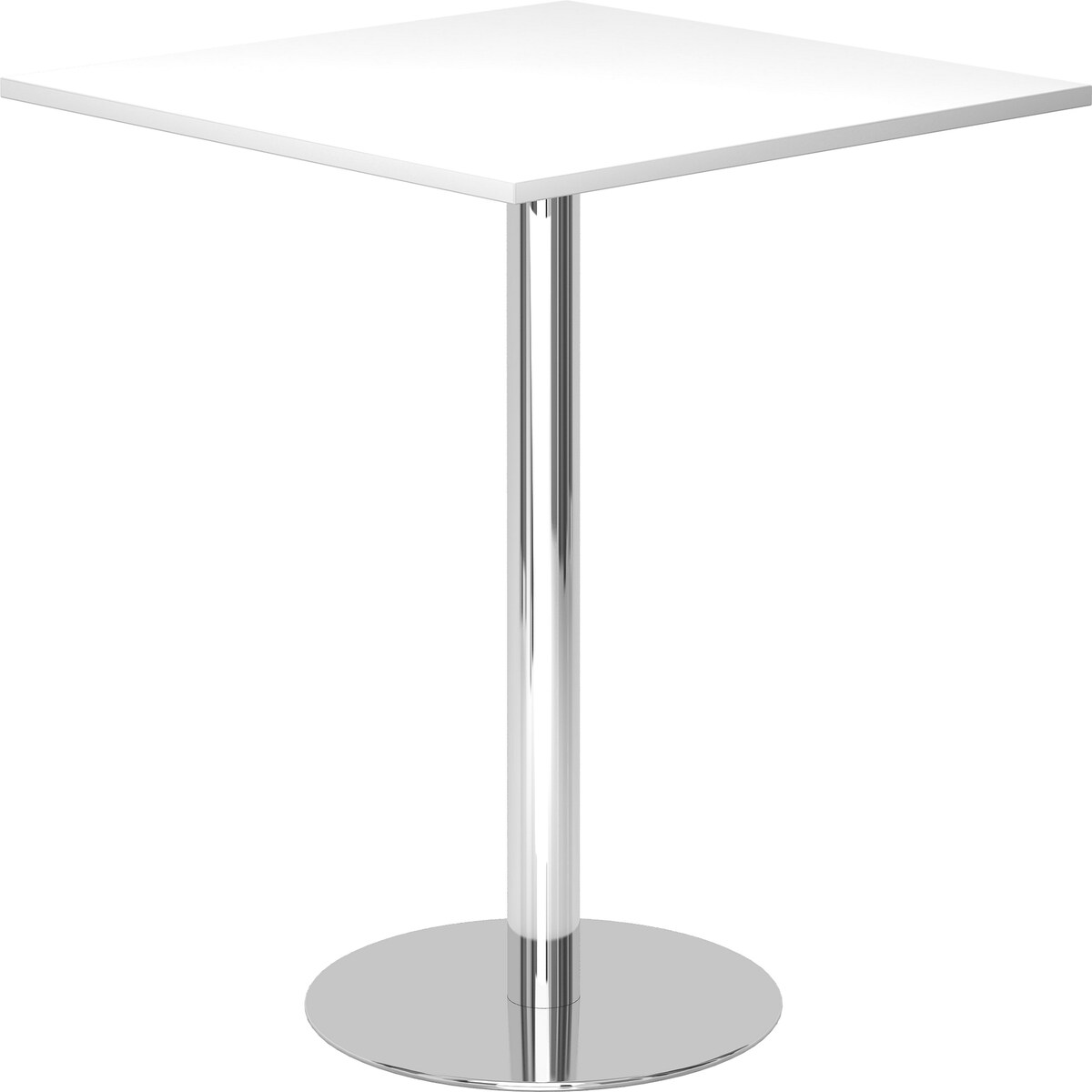 bümö Stehtisch Büro, Bistrotisch eckig 80 x 80 cm - Bartisch weiss, Stehtisch Holz-Platte, Säule aus Metall verchromt, Buffettisch, Säulentisch,