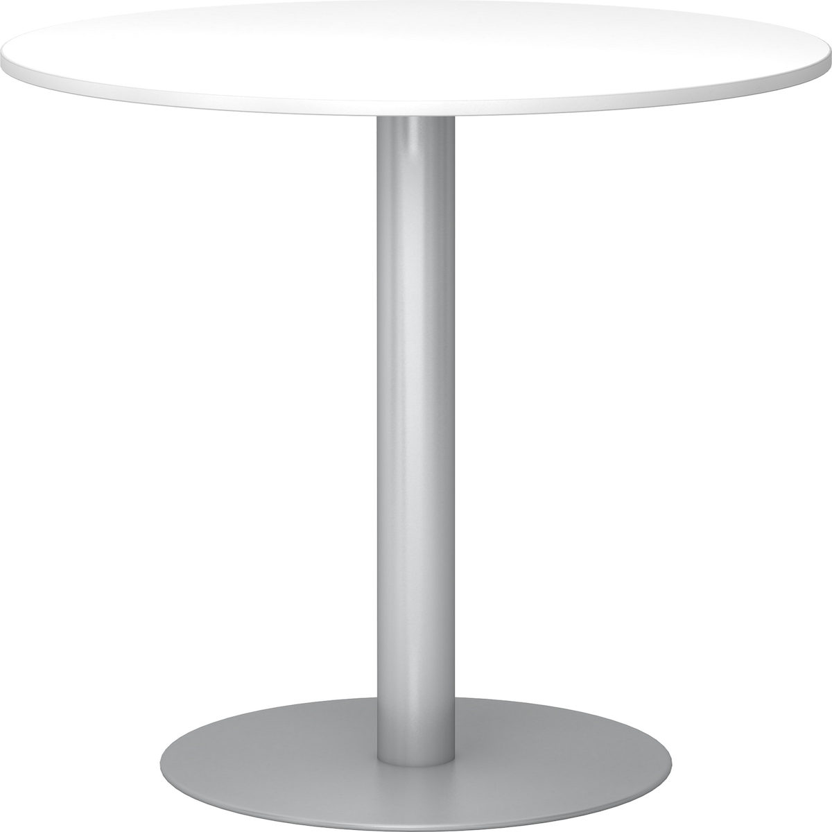bümö Stehtisch Büro, Bistrotisch rund 80 x 80 cm - Bartisch weiss, Stehtisch Holz-Platte, Säule aus Metall in silber, Buffettisch, Säulentisch,
