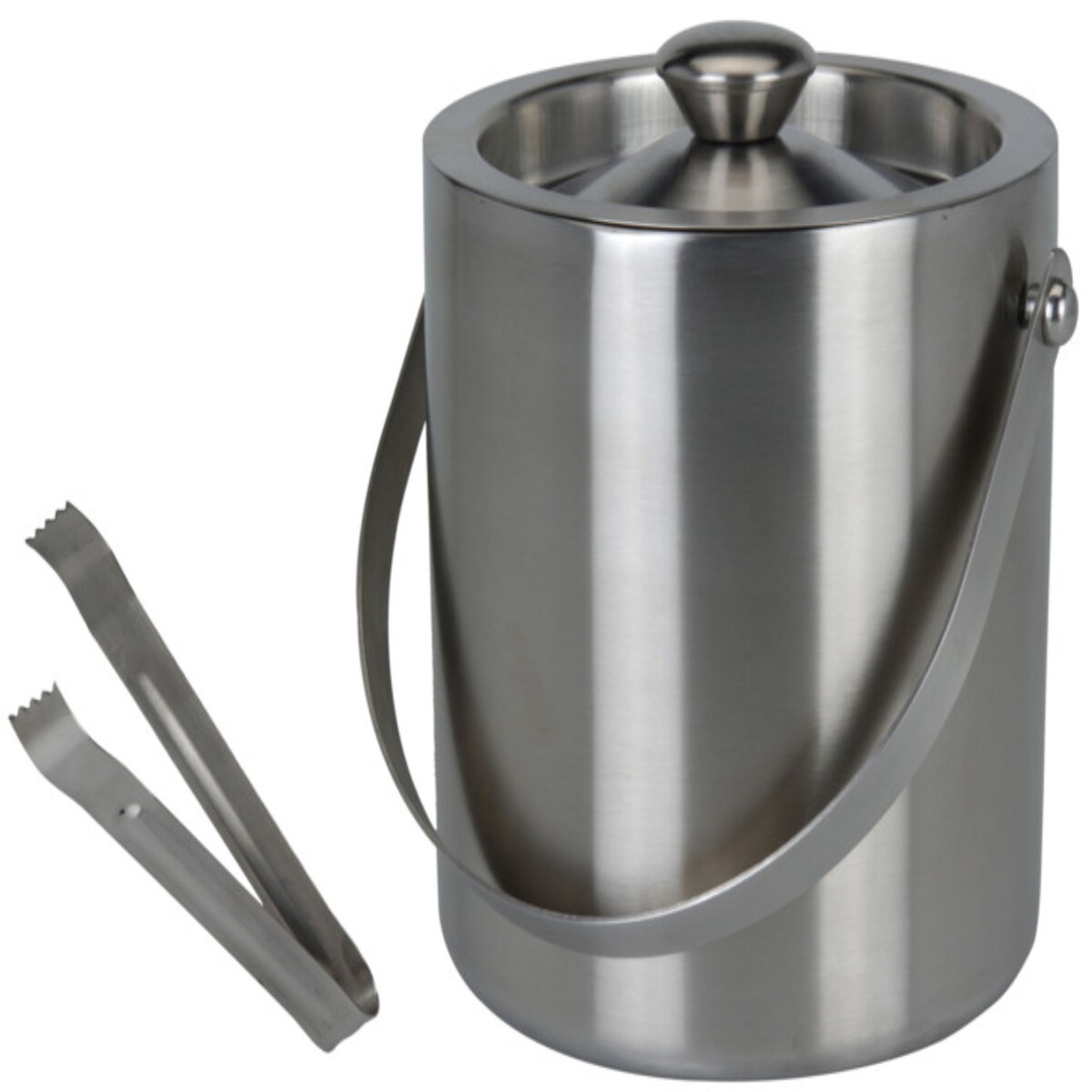 EXCELLENT HOUSEWARE Eiseimer Eiswürfelbehälter Eisbehälter Serviereimer Barzubehör mit Zange Edelstahl mit Deckel