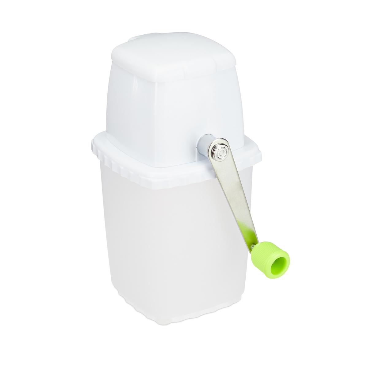 Relaxdays Eiscrusher manuell, Eiszerkleinerer, mit Handkurbel, Barzubehör, ohne Strom, rostfrei, Ice Crusher, weiß-grün
