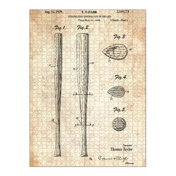 Puzzle Ravensburger "Baseballschläger Patent (Antik)" artboxONE - Sport - Sport,Baseball,Vintage,Patent,Usa,Fitness - Bild sport