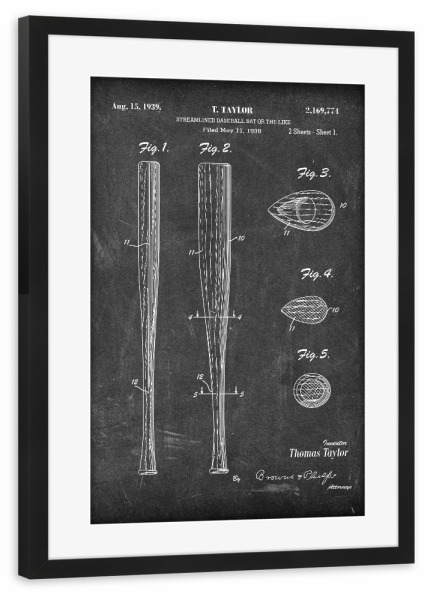 Poster mit Rahmen schwarz "Baseballschläger Patent (Tafel)" artboxONE - Schwarzweiß,Sport