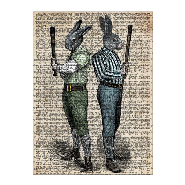artboxONE Puzzle "Baseball-Kaninchen" artboxONE - Tiere - Tier,Wörterbuch,Vintage,Geweih,Hase,Wald,Viktorianisch,Kaninchen,Baseballschläger