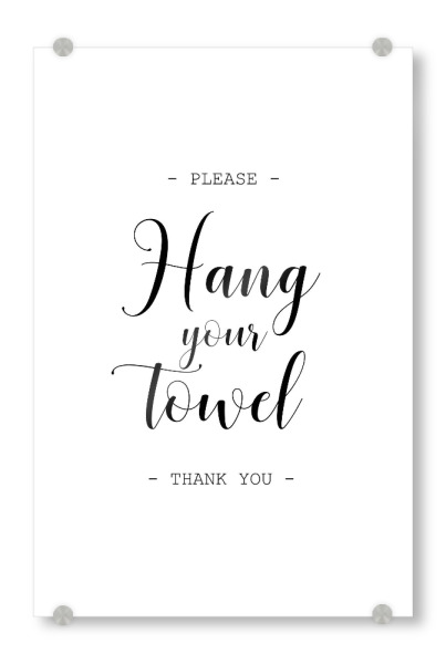 Acrylglasbild "Hang your towel" artboxONE - Typografie,Schwarzweiß,Lustig - Bathroom,Badezimmer,Towel,Handtuch