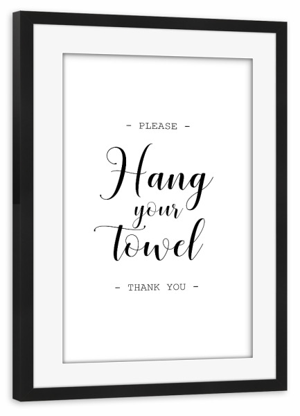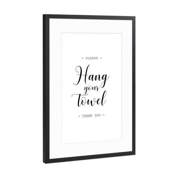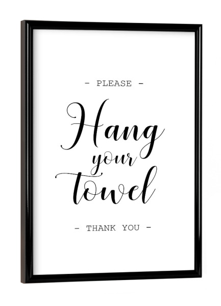 Poster mit Rahmen Schwarz (Metallic) "Hang your towel" artboxONE - Typografie,Schwarzweiß,Lustig - Bathroom,Badezimmer,Towel,Handtuch