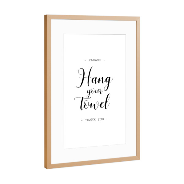 Poster mit Rahmen Kupfer "Hang your towel" artboxONE - Typografie,Schwarzweiß,Lustig - Bathroom,Badezimmer,Towel,Handtuch