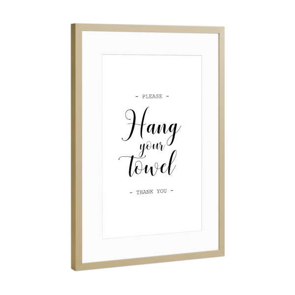 Poster mit Rahmen Gold "Hang your towel" artboxONE - Typografie,Schwarzweiß,Lustig - Bathroom,Badezimmer,Towel,Handtuch