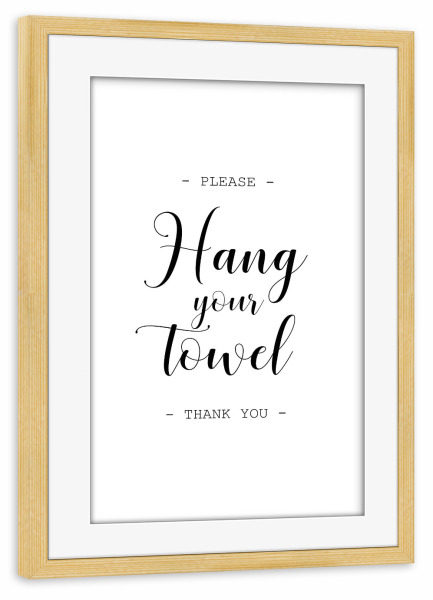 Poster mit Rahmen kiefer "Hang your towel" artboxONE - Typografie,Schwarzweiß,Lustig - Bathroom,Badezimmer,Towel,Handtuch