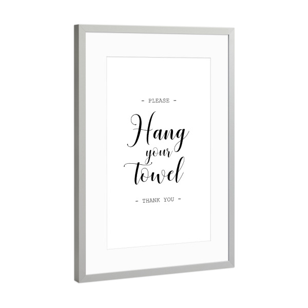 Poster mit Rahmen Silber "Hang your towel" artboxONE - Typografie,Schwarzweiß,Lustig - Bathroom,Badezimmer,Towel,Handtuch