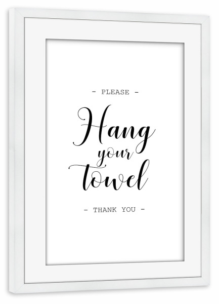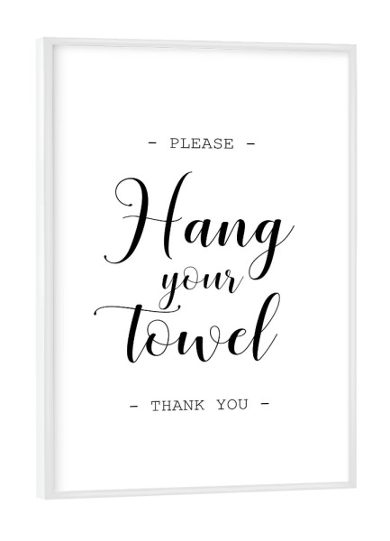 Poster mit Rahmen weiß "Hang your towel" artboxONE - Typografie,Schwarzweiß,Lustig - Bathroom,Badezimmer,Towel,Handtuch
