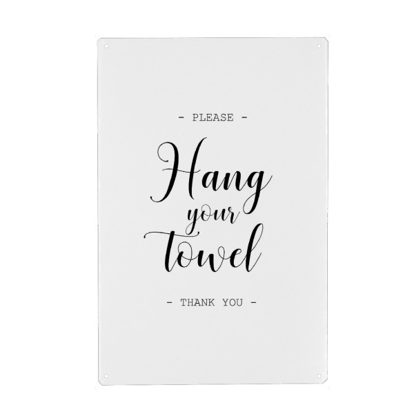Metall Poster "Hang your towel" artboxONE - Typografie,Schwarzweiß,Lustig - Bathroom,Badezimmer,Towel,Handtuch - Blechschild