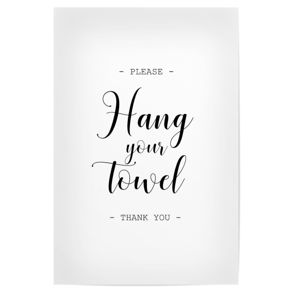 Poster "Hang your towel" artboxONE - Typografie,Schwarzweiß,Lustig - Bathroom,Badezimmer,Towel,Handtuch