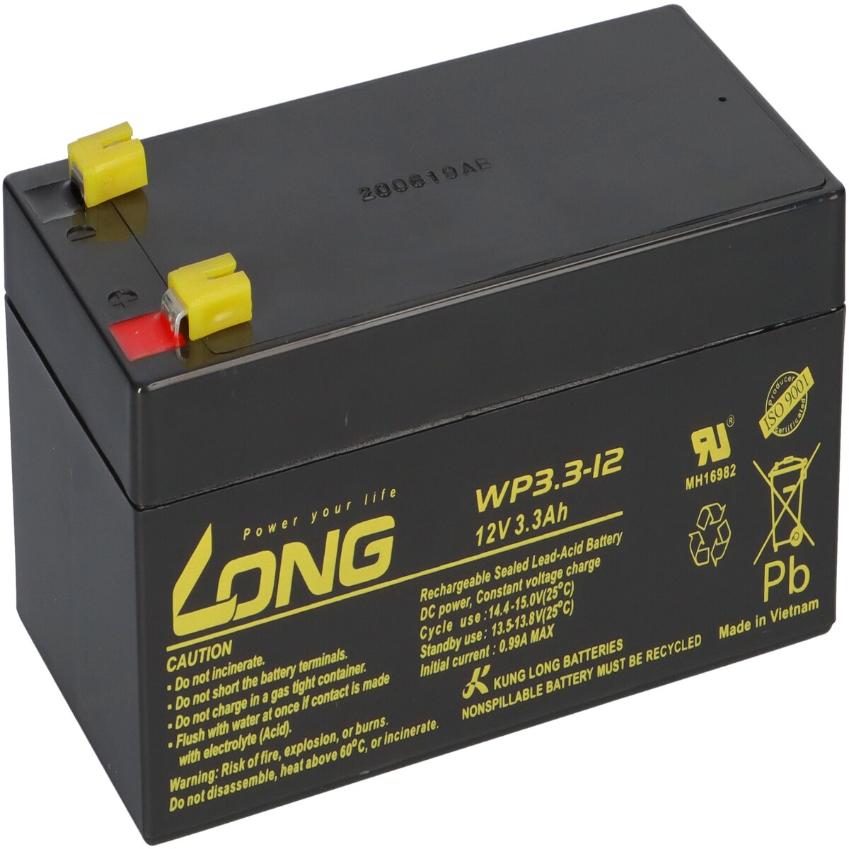 Kung Long WPS2.3-12 12V 2,3Ah AGM Blei Batterie wartungsfrei VdS battery