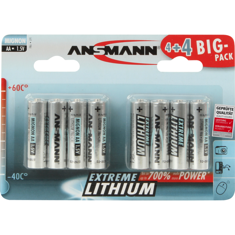 Ansmann Extreme Lithium Mignon AA Batterie, silber, 8 Stück
