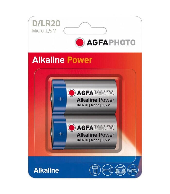 Agfaphoto Batterie Alkaline, Mono, D, LR20, 1.5V Power, Retail Blister (2-Pack)