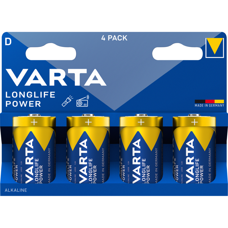 Varta Batterie Alkaline, Mono, D, LR20, 1.5V Longlife Power, Retail Blister (4-Pack)