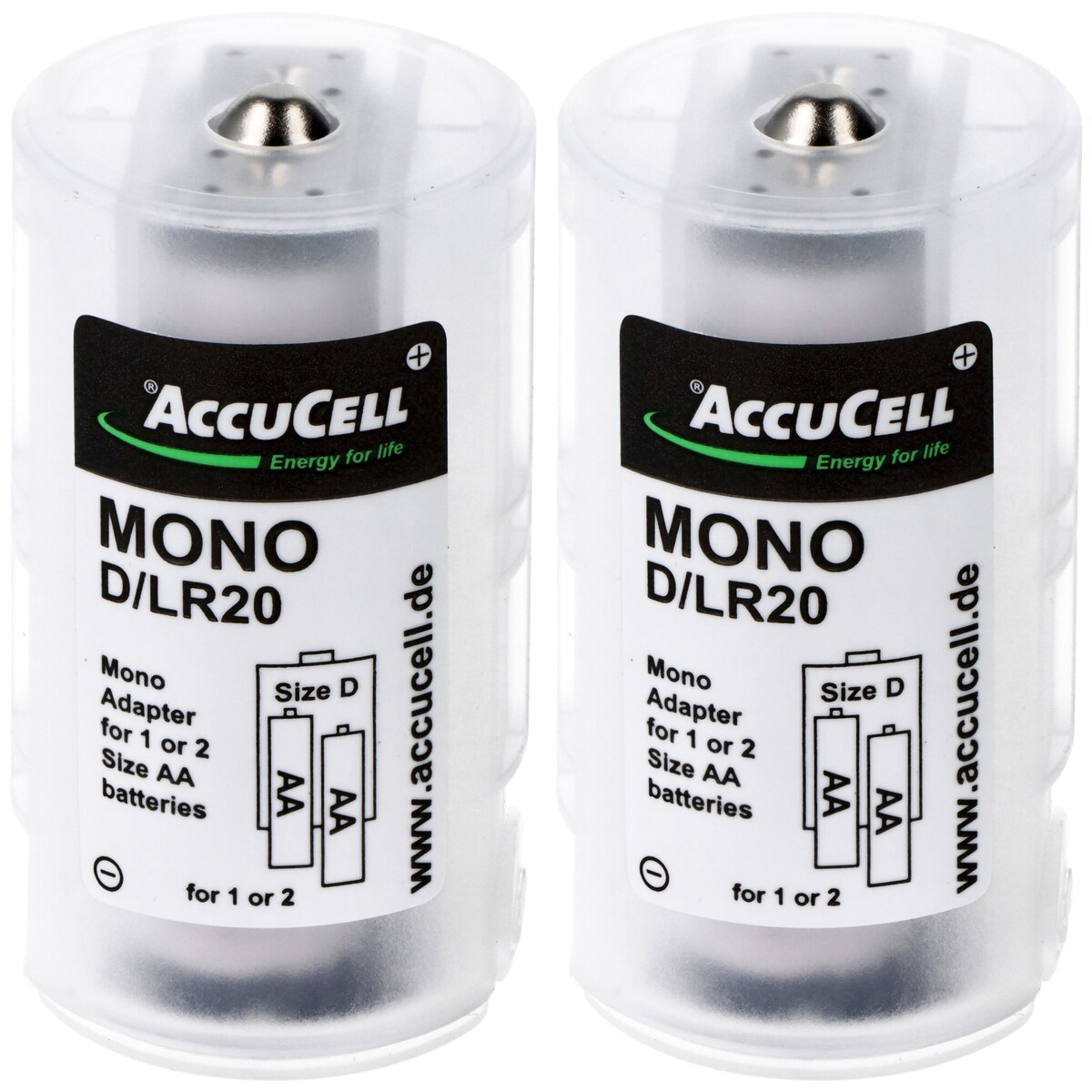 AccuCell Universal Mono D Adapter im 2er Pack für 1 oder 2 Mignon, AA, LR6, FR6 Batterie oder Akku