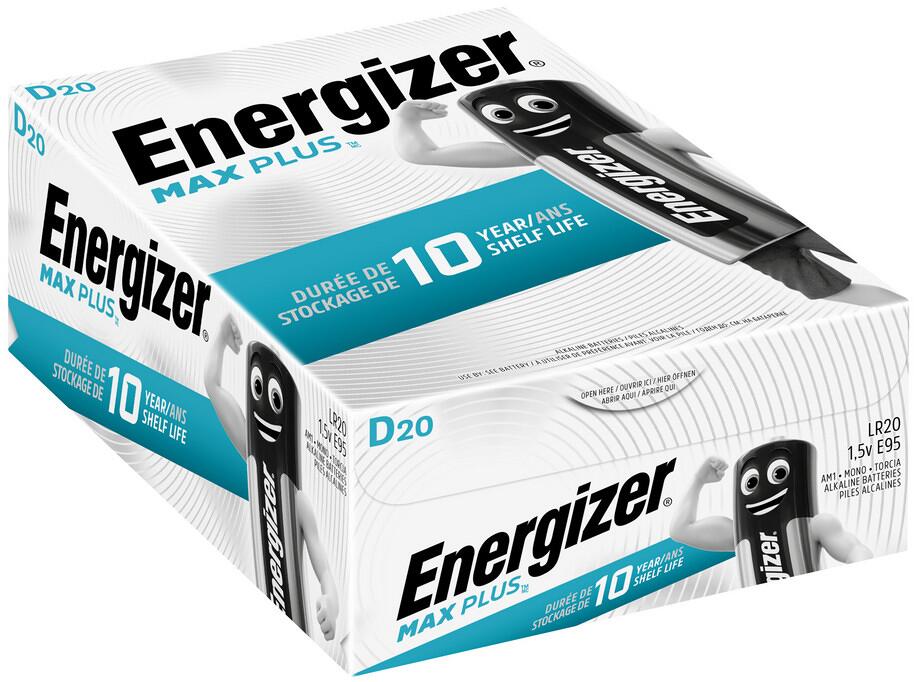 Energizer Max Plus Mono (D) Alkali-Mangan Batterie, 20 Stück (E301323700)