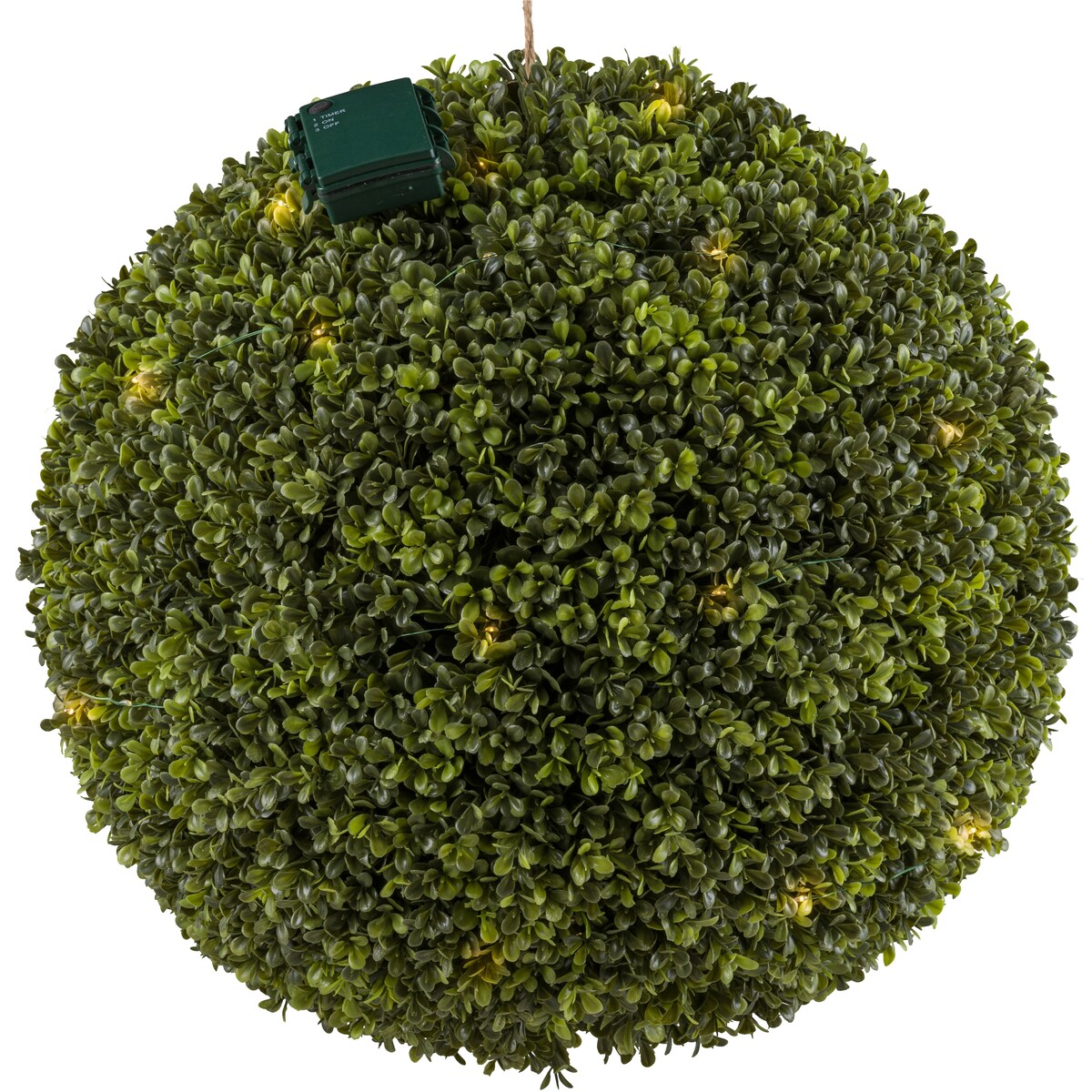 CREATIV green künstliche Pflanze Buchsbaumkugel Ø 45cm, 45 LED, Batteriebox für 3 AA, 6h Timer, UV-beständig