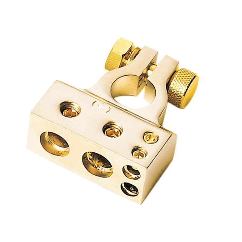 2 Stück 4-Wege-Batterieklemme positiv negativ Messing gute elektrische Leitfähigkeit für SAE JIS Typ A Pfosten Auto Boot