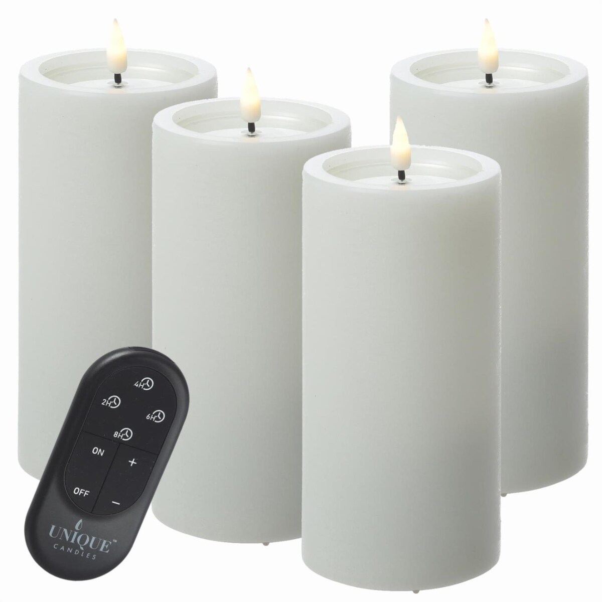 LED Kerzenset UNIQUE Rustik-Optik H: 15cm mit Batterien Fernb. 4er Set