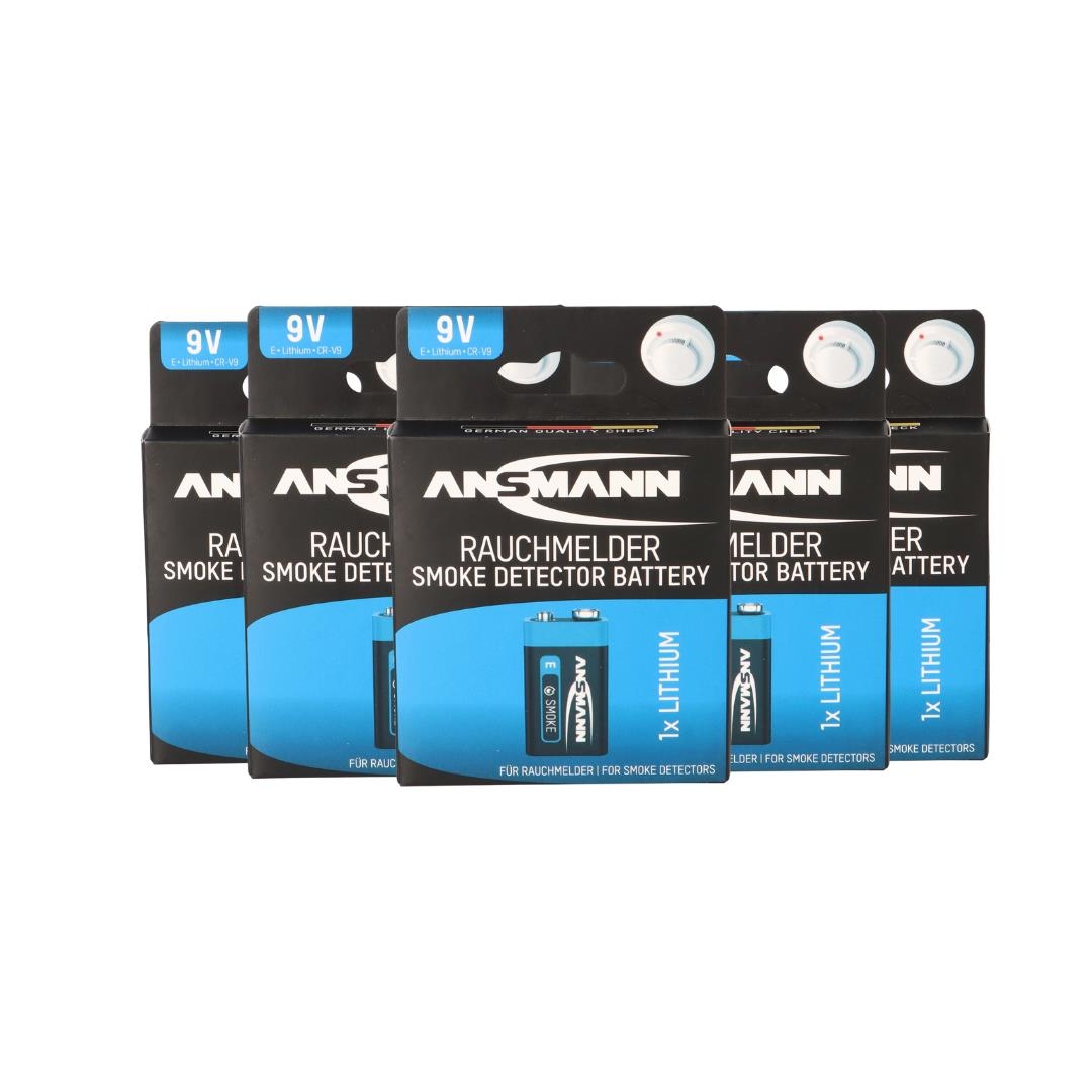 5x XCell Lithium 9V Block Hochleistungs- Batterien für Rauchmelder / Feuermelder - 10 Jahre Batterie Lebensdauer