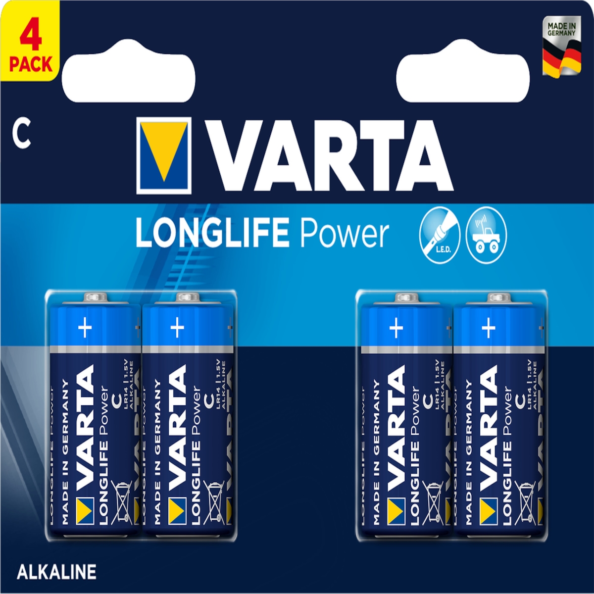 Varta Batterie Alkaline, Baby, C, LR14, 1.5V Longlife Power, Retail Blister (4-Pack)