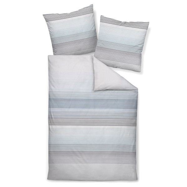 Janine Bettwäsche 87113, Satin, 100% Baumwolle, gestreift, grau-blau, 135x200cm, Knutzen Wohnen