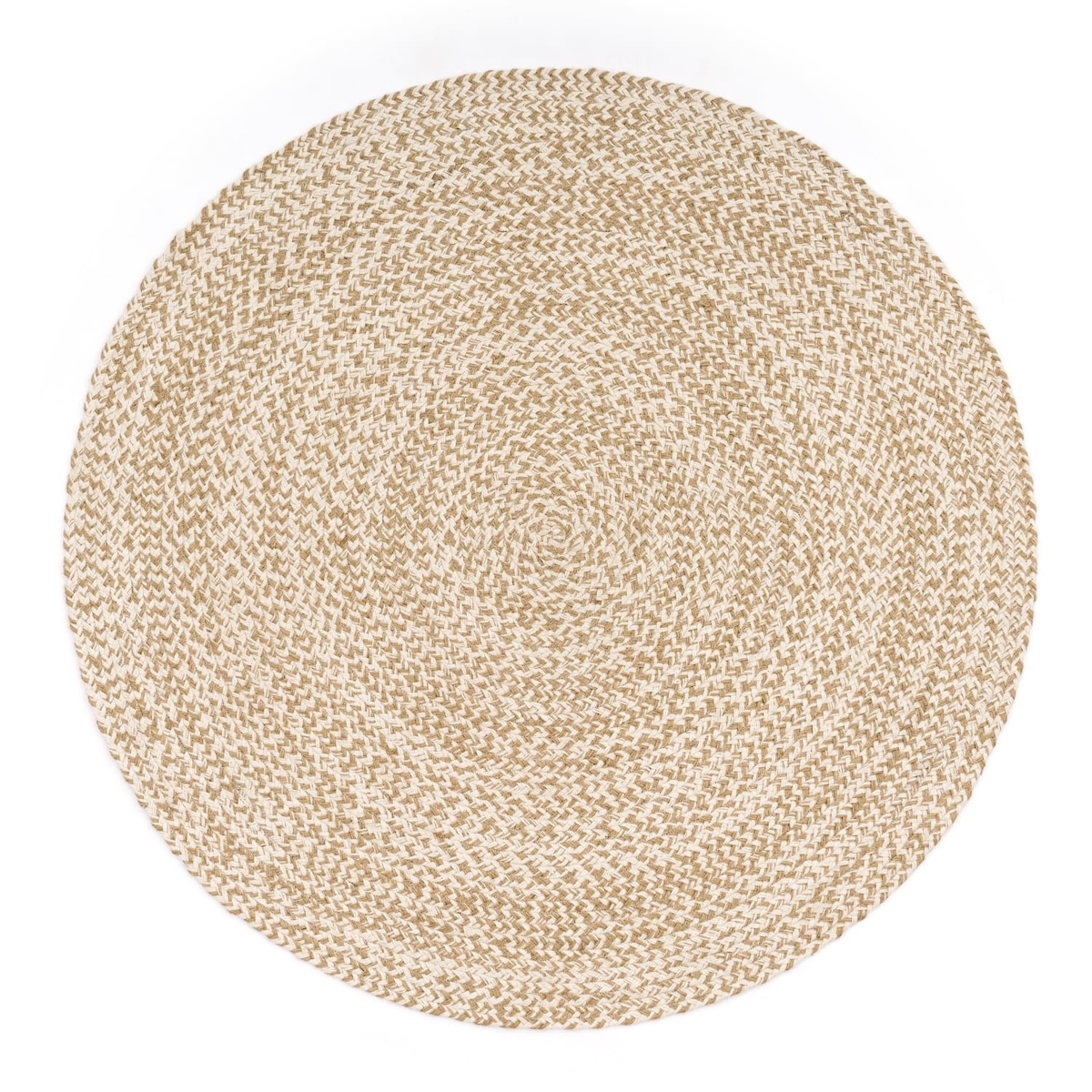 Baumwollteppich Boho wendbar schmutzabweisend Elfenbein Rund 80D | 100% Jute, Rücken aus Jute | Florhöhe: 5 mm | pflegeleicht