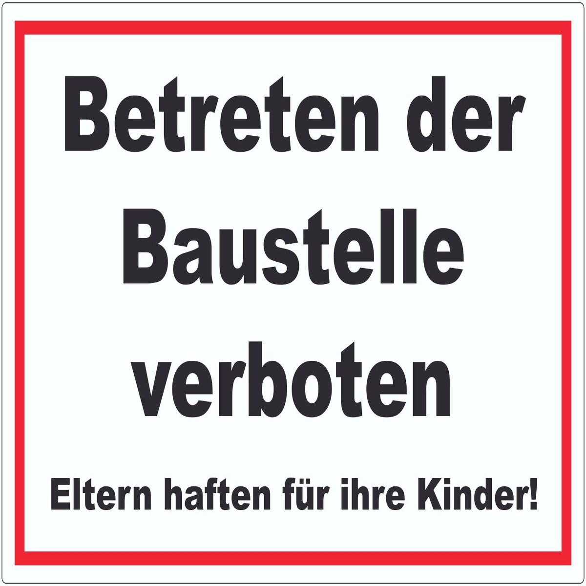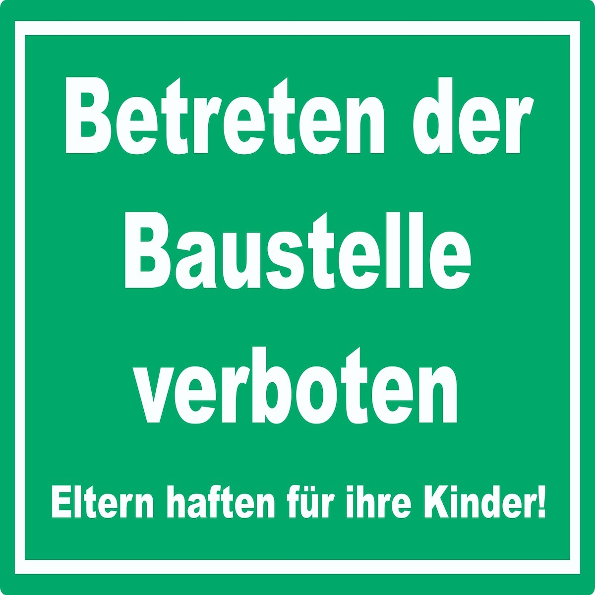 Schild "Betreten der Baustelle verboten, Eltern haften für ihre Kinder"