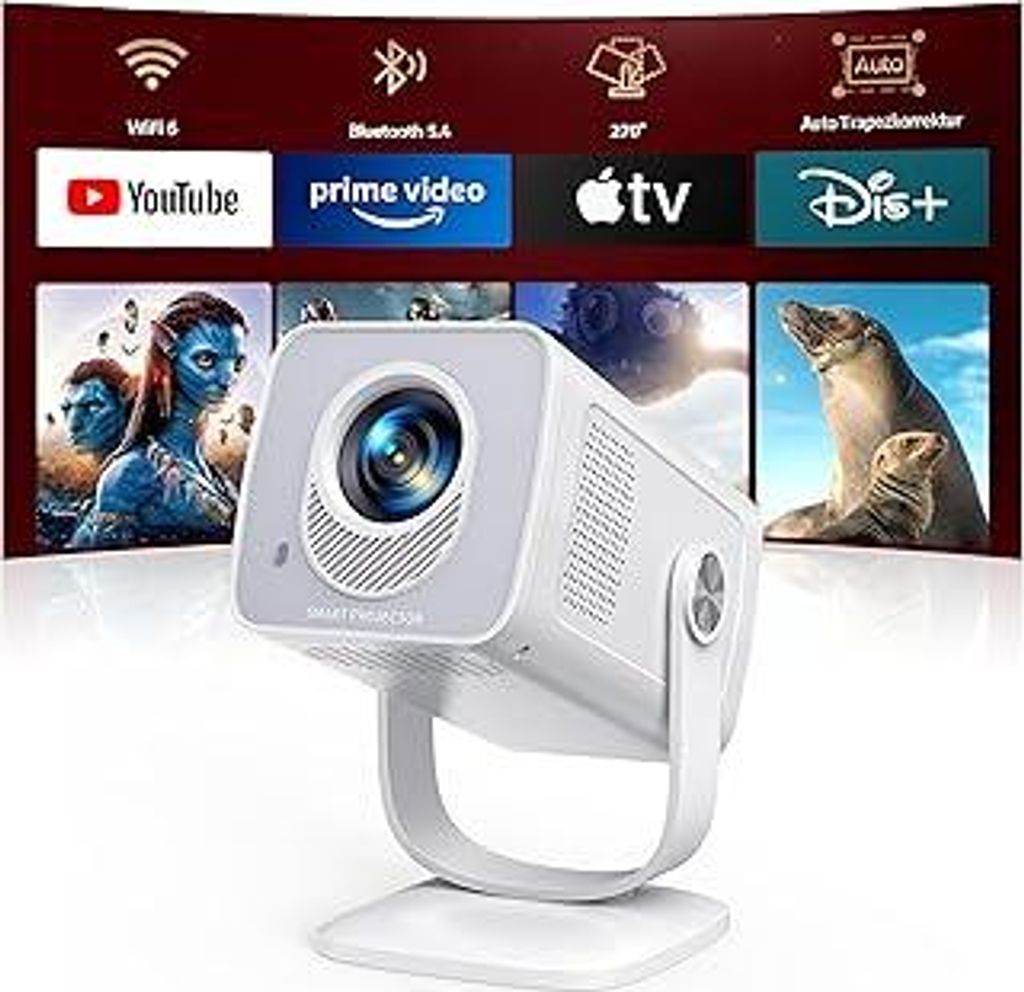 1080P Full-HD Mini Beamer, Mit Autofokus, 4K Unterstützung, WiFi 6 & Bluetooth 5.4, Integrierte Apps & Air Remote