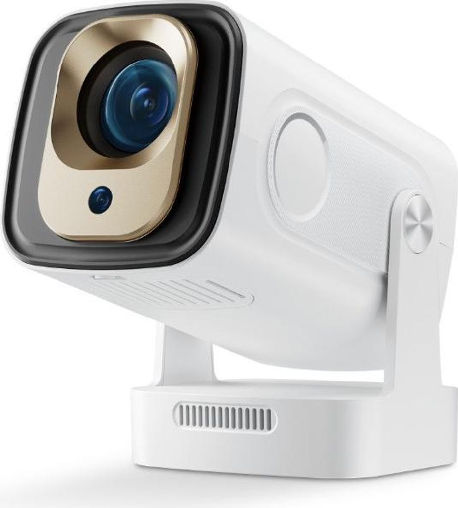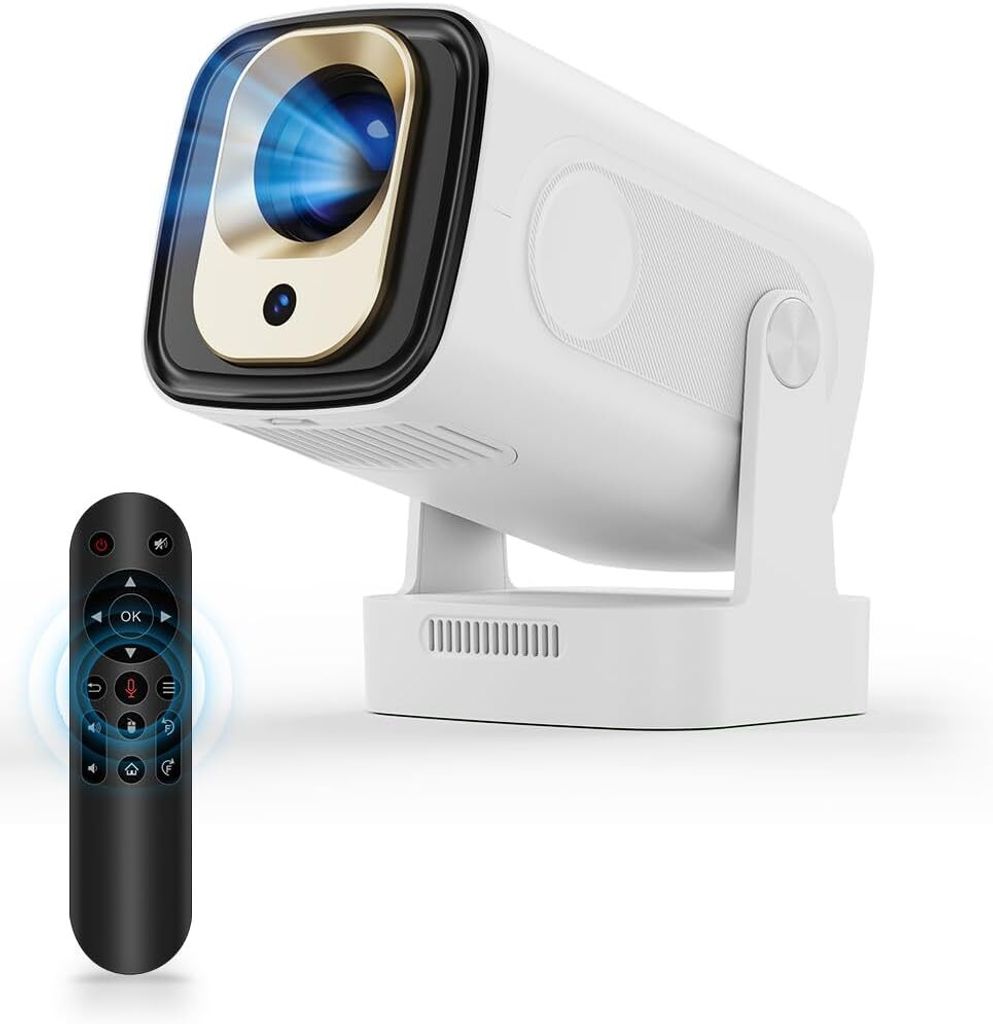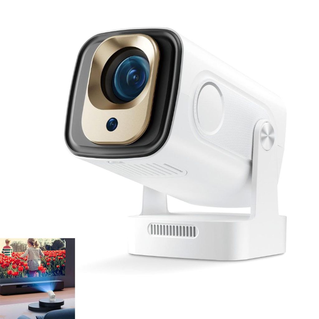 Beamer, Mini Projektor mit WLAN, unterstützt 1080p- und 4K-Eingang, BT5.0 mit 12.0 Android OS, Heimkino-Projektor, 180° verstellbarer Winkel, Weiß