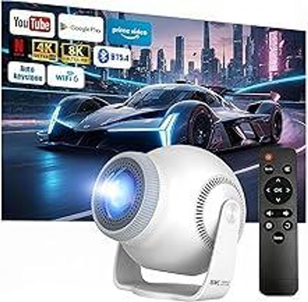 Mini Beamer 4k 1080P Unterstützung, Mini Projektor 22000L mit Android 12.0, WiFi 6 und Bluetooth 5.4, Heimkino Smart Beamer mit Auto Keystone Hand...